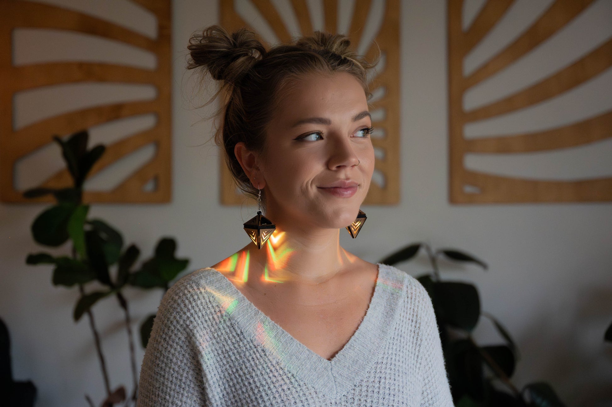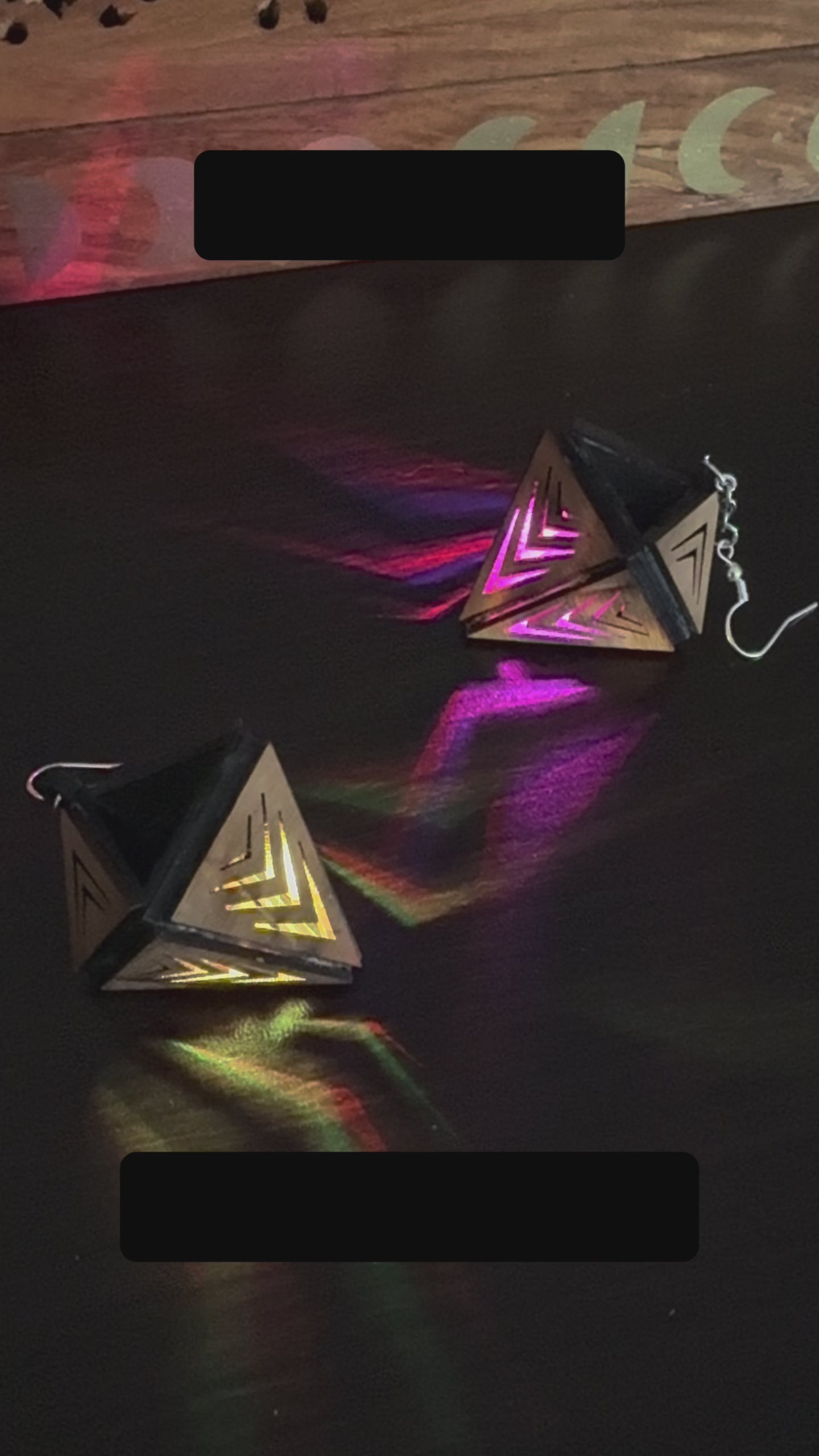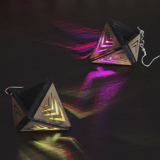 Bring light and color with you wherever you may go with this pair of wood lantern earrings. Now rechargeable with multi-color modes.